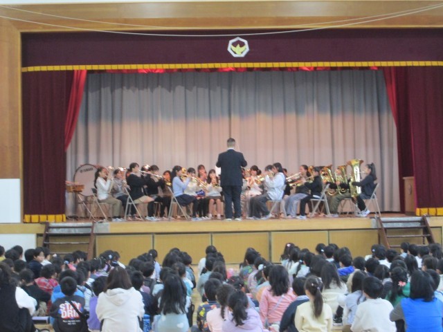 今日は、音楽クラブが管楽器演奏会で演奏した、エルガー作曲「威風堂々」を披露しました。息ぴったりの演奏に会場のみんなも感動していました。