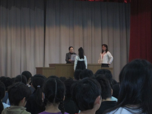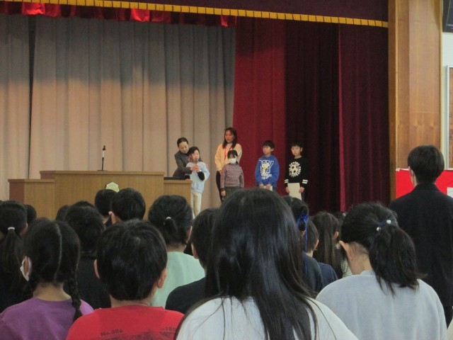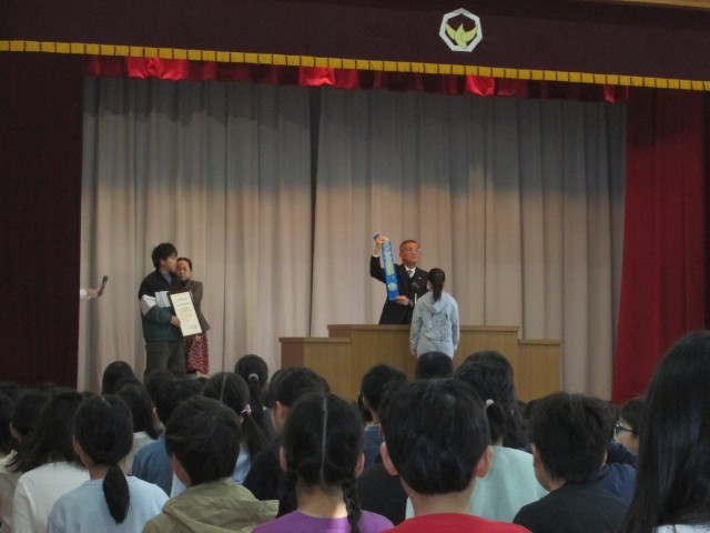 今日の全校朝会は、たくさんの表彰がありました。「小さな親切運動」の表彰では、運動本部の方のお話もあり、学校での取り組みをさらに行っていこうと思いました。