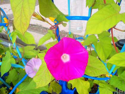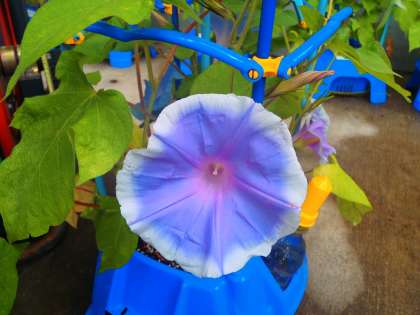 数日前よりあさがおの花が毎朝たくさん咲くようになりました。今日も朝早くから1年生が水やりをしていました。すると、「雨が降ったら、水やりはいらないんだよ。」と教えてあげている子がいました。教えてもらった子は「わかった。」と言っていました。友達同士の教え合いはすてきです。