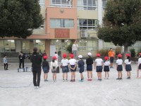 12月7日(水)の体育朝会はなわとび大会に向けてのリハーサルでした。どの学級も「はい。はい。」「せーの!」などのかけ声をかけて跳んでいました。