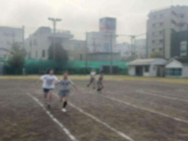 チームで、「もっとスタートを早くしよう。」「手を高く上げて。」などと声を掛け合い、協力してバトンパスなどの練習に励んでいます。