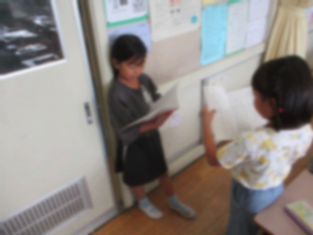 教科書に載っている絵やカタカナを見て、文章を作りました。
