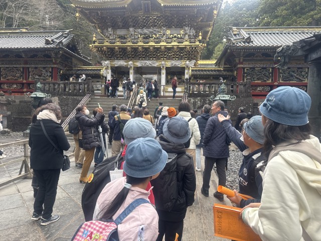 まず眠り猫や鳴き龍を見ました。この後行動班に分かれてそれぞれが調べた場所をガイドします。