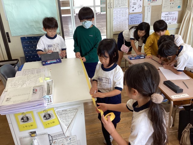 グループで協力し合って長さを図る姿や、「どれを図る?」と自分勝手ではなく、相談している姿を見ると成長を感じました。