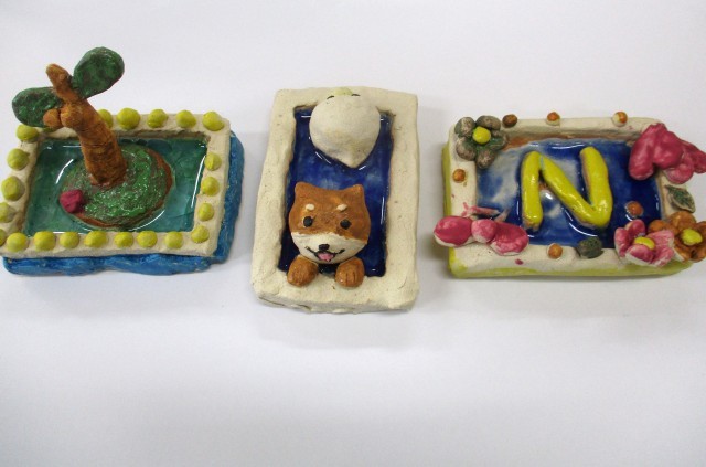 6年「魔法のプール」陶芸用粘土と色ガラスを焼成しました。どれも味わい深いです。