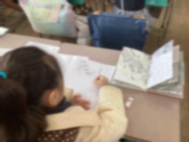 読書科の学習でお気に入りの本を紹介するためのカードを作成する活動を行ないました。選んだ本のあらすじや好きな場面を絵と文でかき表しました。このカードを使って、友達と紹介し合う活動を計画しています。