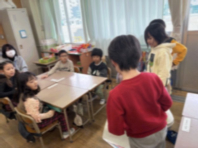 2年生が生活科の学習で調べたことについて、1年生に伝えに来てくれました。