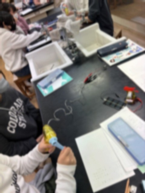 理科の学習では、電気について学んでいます。手回し発電機や光電池を使って発電の仕組みを知りました。また、電池を溜めることが必要であることに気付き、コンデンサーを使って蓄電をしました。自分たちの生活と電気を関連付けることで、理解を深めています。