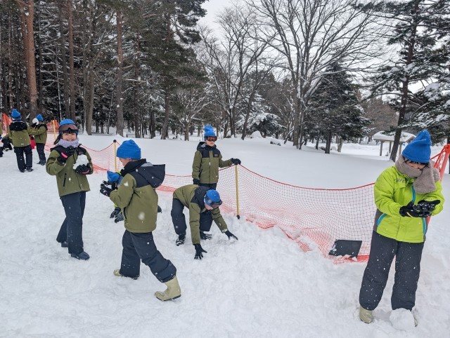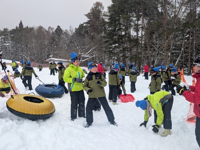スノーチューブやソリをお借りして遊んだり、雪合戦や雪だるまを作って全力で楽しんだりしていました。