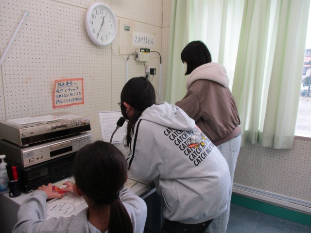 給食委員会では、お昼に放送を行っています。献立の紹介、行事食、食材の豆知識などのクイズ、解説をしています。