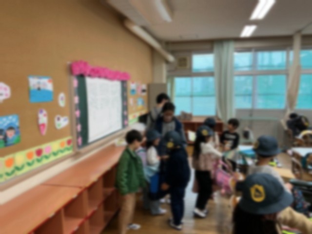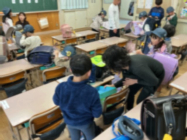 1年生のお世話をする6年生の様子です。6年生になって初めての役割です。朝の支度を手伝ったり、休み時間一緒に遊んであげたりします。1年生に寄り添い、優しい声かけをする姿が見られます。