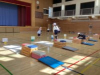 節分、豆まき、日本ではいつ頃から豆まきをしていたのか(1306年前だそうです)のクイズ、各クラスの追い出したい鬼の発表、代表児童による豆まきとプログラムを進めました。