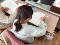 今日はバレンタインデーなので、給食室から愛をこめてチョコレートケーキを焼きました。ミネラルたっぷりのレーズンとアーモンドを入れた特製ケーキです。ぜひ味わってくださいね。