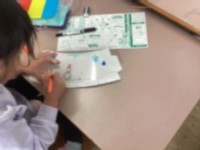 何枚も繋げて、身長より長い作品を作る姿も見られ、友達と見せ合い楽しく交流していました。