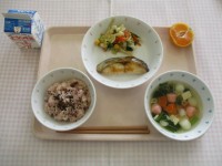 〈献立〉さんまご飯牛乳ひじき入り卵焼きキャベツのおひたし豆腐のみそ汁ぶどう