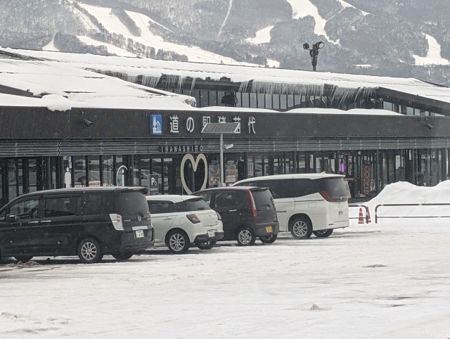 道の駅猪苗代にてタイヤにチェーンを巻いていてまもなく宿舎に到着します 。周囲はすっかり雪景色で、少し雪も舞っています。前方には明日スキーをするスキー場も見えていて「早く雪を触りたい。」と子供たちの期待...