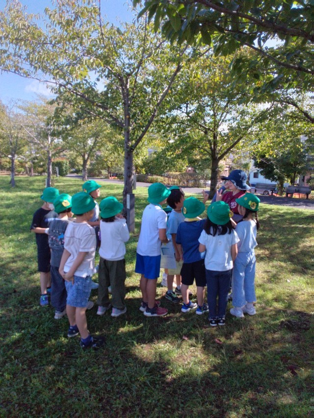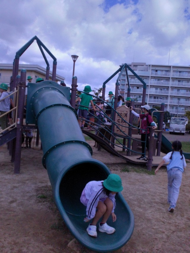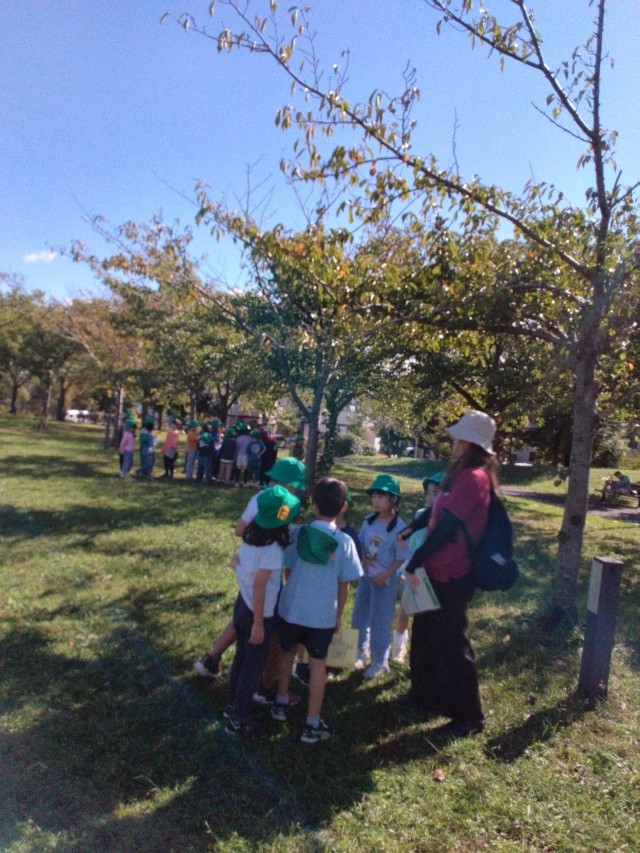 10月17日(金)、青空が広がる中、市川市の広尾防災公園へ生活科見学に出かけました。1、2年生合同で、120人を超える子どもたちが、交通ルールを守って公園まで歩きました。
