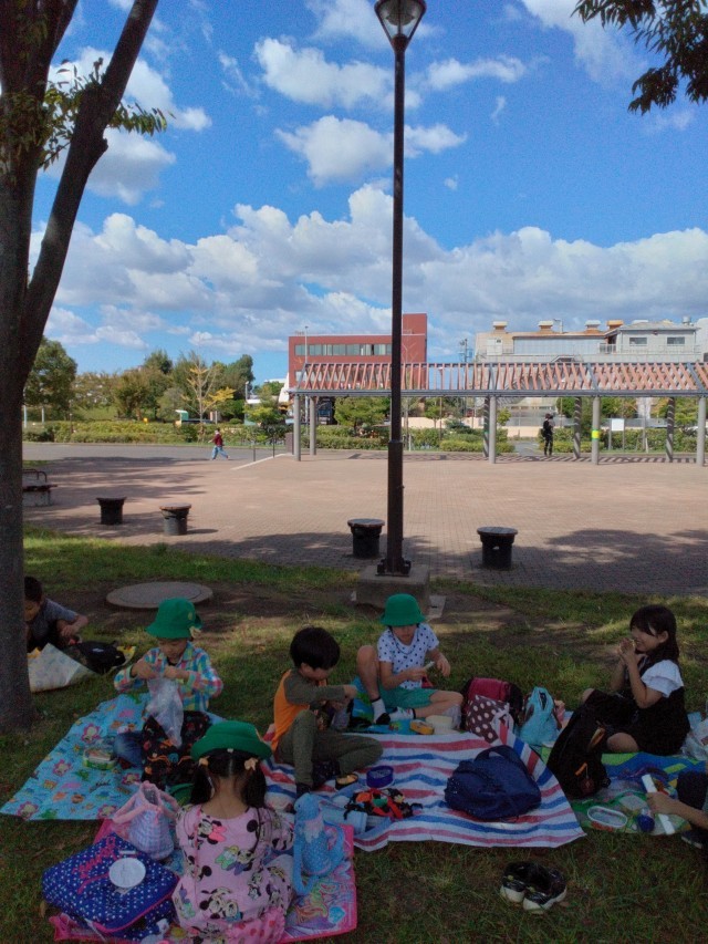 楽しみだったお弁当は、美味しくて「もっと食べたい」という子が多かったです。水筒も空になった子が多く、水道が混んでいました。