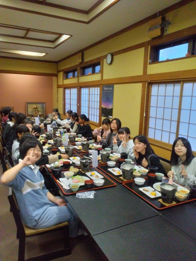 朝食は、シャケや寄せ豆腐、卵、ヨーグルトなどでした。しっかり食べて、今日の活動も楽しみましょう。