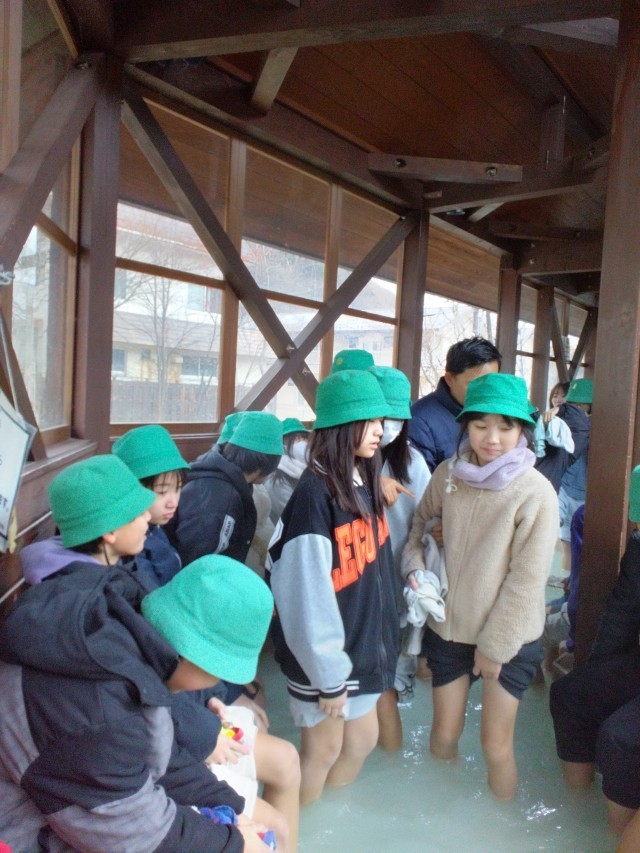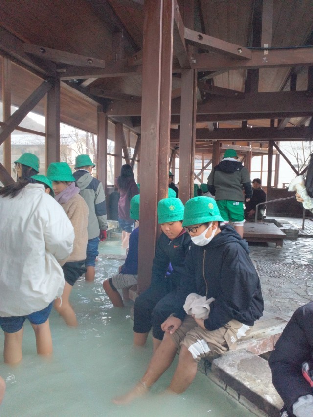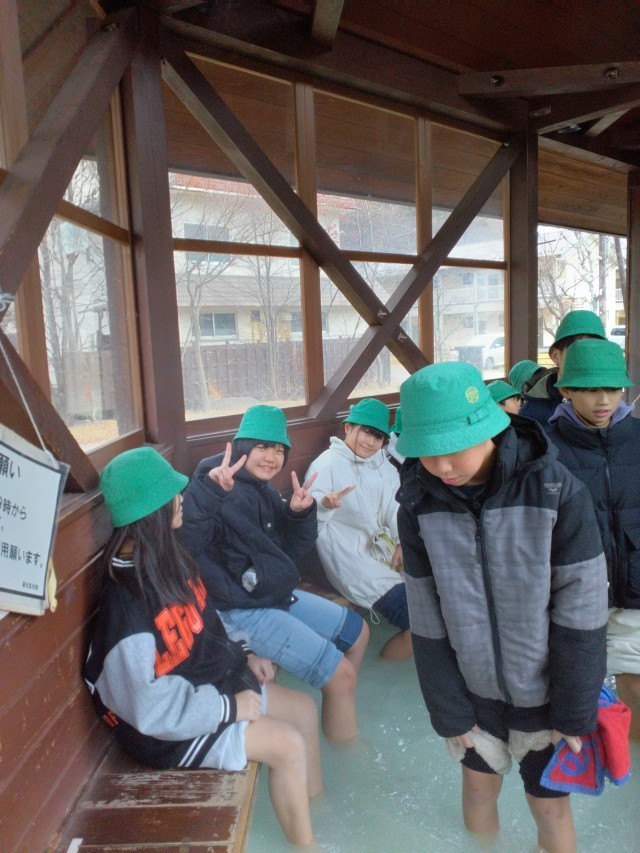 湯元源泉に寄ってから、足湯「あんよの湯」ヘ行きました。気温が0℃でも、足は43℃の温泉の中。次第に体がポカポカしてきました。