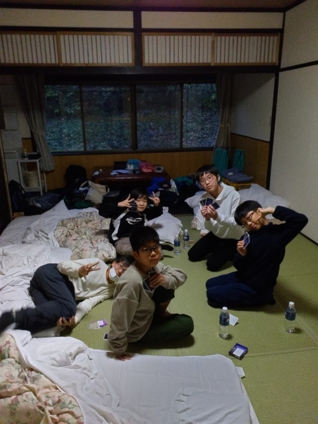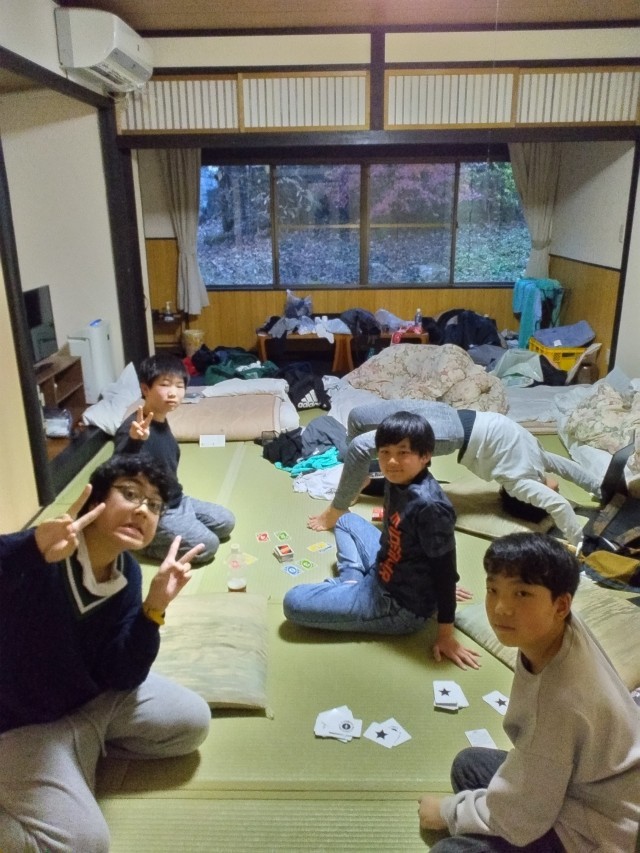 寒くて早めに宿ヘ帰って来たので、宿のご厚意で15時から1回目の入浴タイム、そしてナイトツアーの後に2回目の入浴タイムにしていただきました。冷え切った体がポカポカになった子どもたちは、それぞれの部屋で楽しそうに遊んでいます。