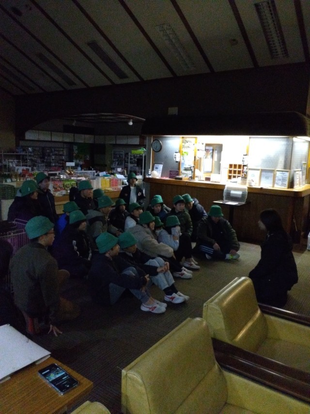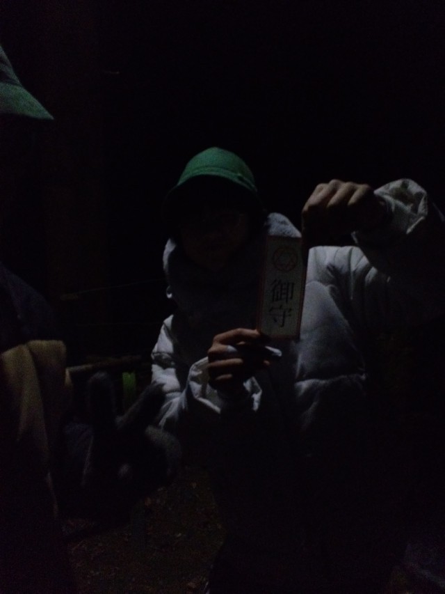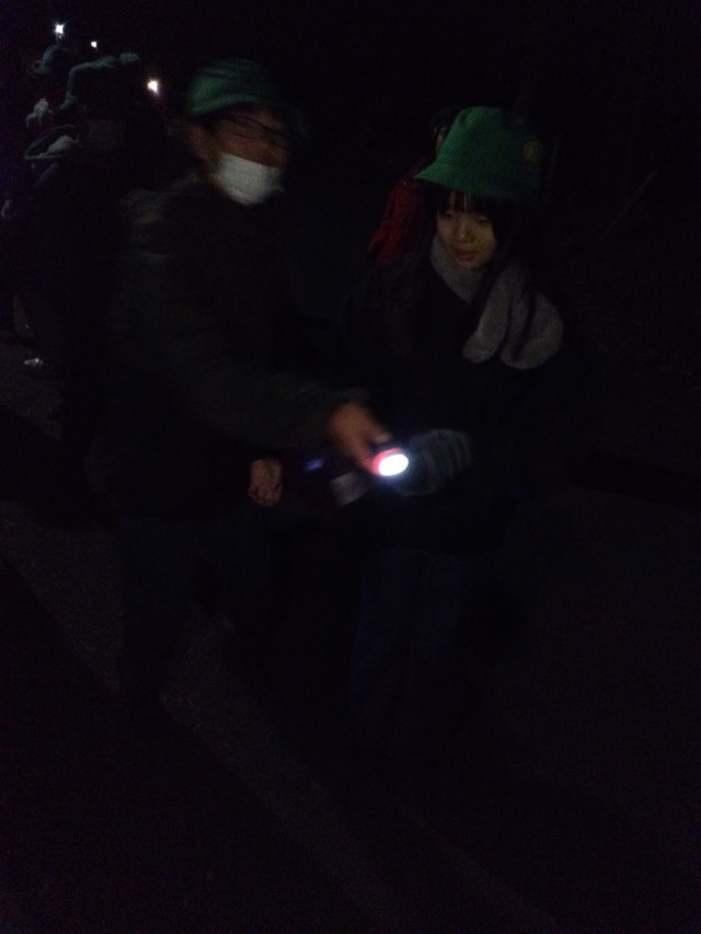 初めに、ちょっと怖い説明を聞いてから、静かに落ち着いて出掛けました。暗闇から聞こえる「ギャー」「わぁー」の声!最後に御札をもらって宿に戻りました。