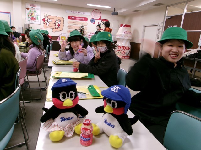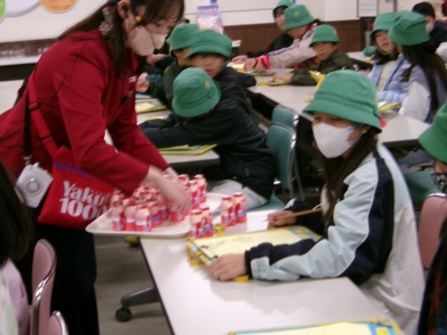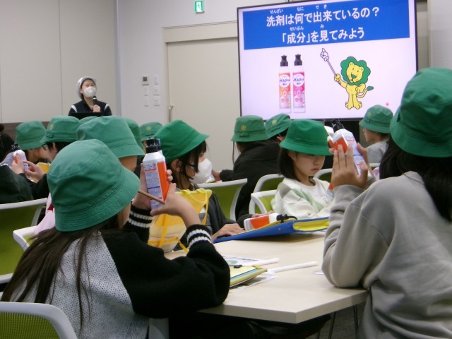 (株)ヤクルト工場では、腸内環境と健康のつながりについて説明を聞いてから、ヤクルトの生産ラインを見学したり、宅配用の「ヤクルト1000」をいただいたりしました。帰りには、全員にお土産もいただきました。千葉市科学館では、8~10階の科学技術体験ブースでグループごとに楽しんでからお弁当を食べました。(株)ライオン工場では、洗濯洗剤の生産ラインを見学してから、界面活性剤が汚れを落とす仕組みの実験を見学しました。1人1本ずつ食器用洗剤をいただき、おうちへのお土産になりました。
