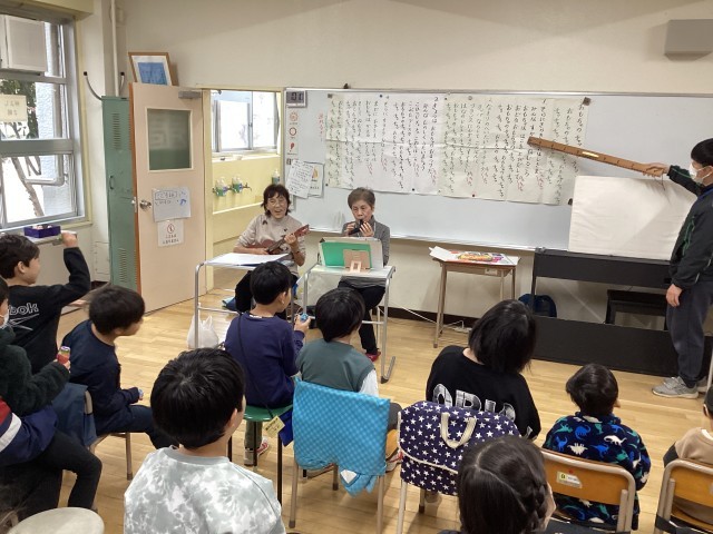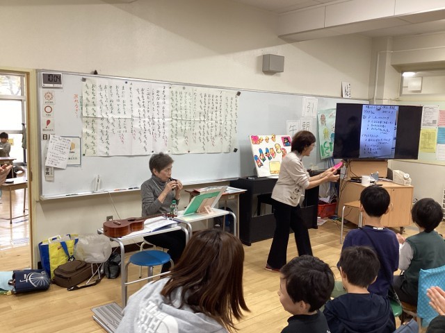 くすのきカルチャーセンターに通っている方が、ボランティアで仲よし学級の児童にウクレレやオカリナの演奏をしてくれました。演奏に合わせてみんなで歌ったり、手作りのマラカスを鳴らしたりして楽しく過ごしました。
