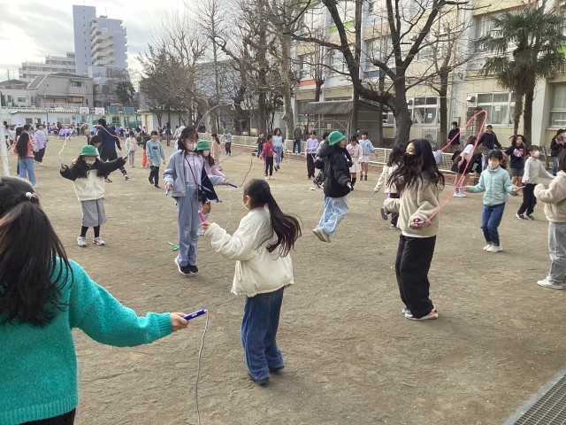 今日から1月末まで「なわ跳びウイーク」です。中休みに全員でなわ跳びをします。初日の今日はそれぞれが思い思いの跳び方でなわ跳びを楽しみました。明日以降は「今日は前跳び」などテーマを設けて跳ぶ日もあります。寒い季節ですがなわ跳びで体を温め、運動に励みたいです。
