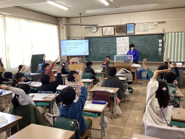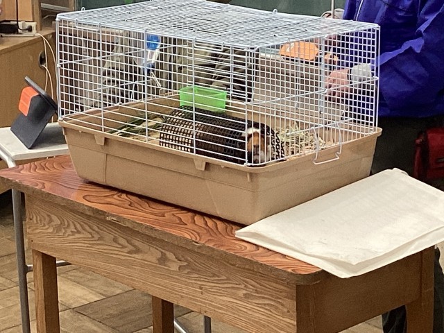 2年生がモルモットの飼育体験の授業を受けました。本物のモルモットが教室に来て、ゲームやクイズを楽しみながらモルモットのことを学びました。生き物や生命に関する興味、関心を高められました。