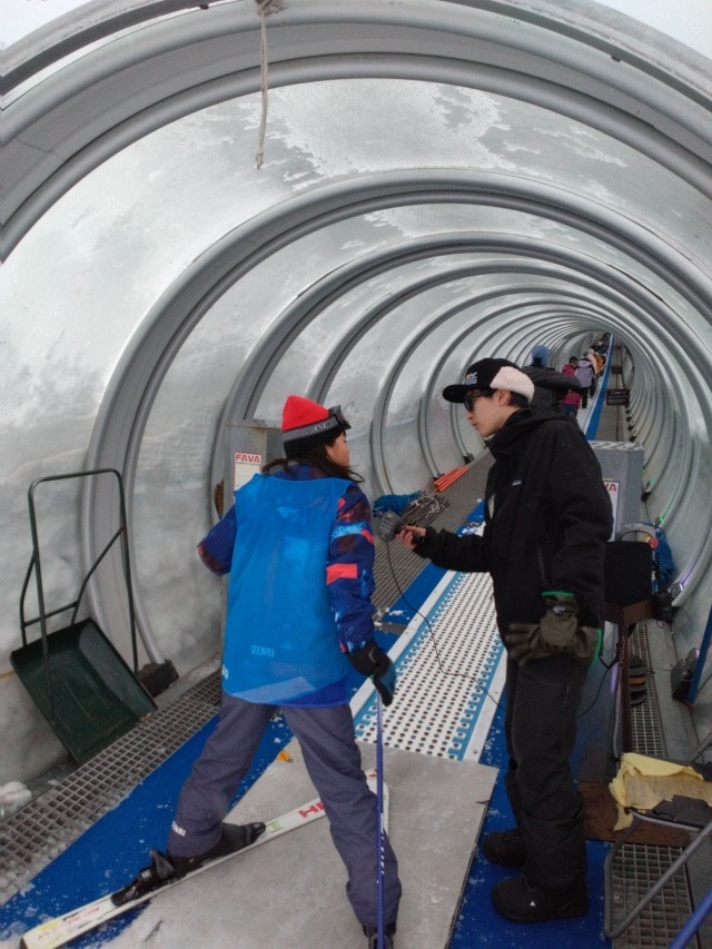 上達してきたグループが、ドームリフトに挑戦し始めました。午後には、山頂へのリフトに乗れそうです。