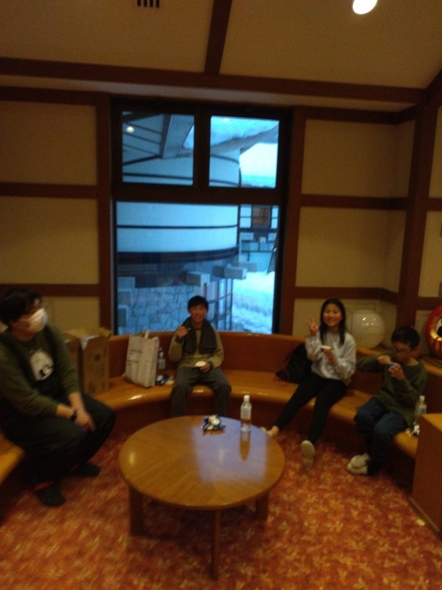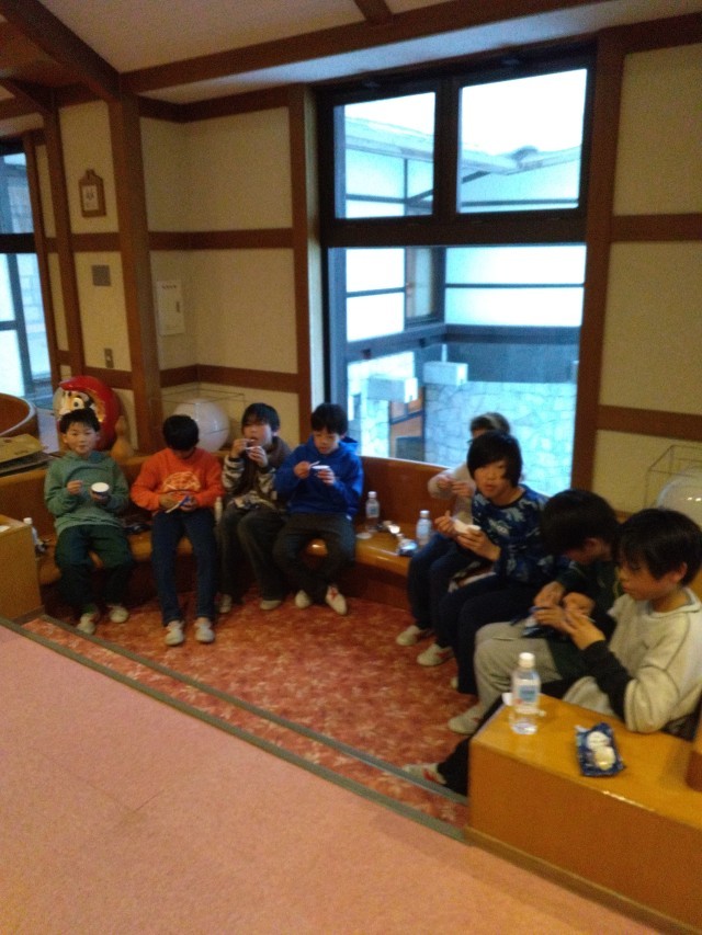 宿舎に戻ってウェアとスキーブーツを返却し、お風呂に入りました。今日は、お風呂上がりにアイスクリームです。ものすごく美味しかったそうです。