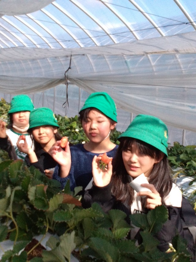 原田農園でイチゴ狩りをしました。真っ赤なイチゴを選び、食べながら先に進みます。30個、50個、70個と、30分間で食べまくりました。