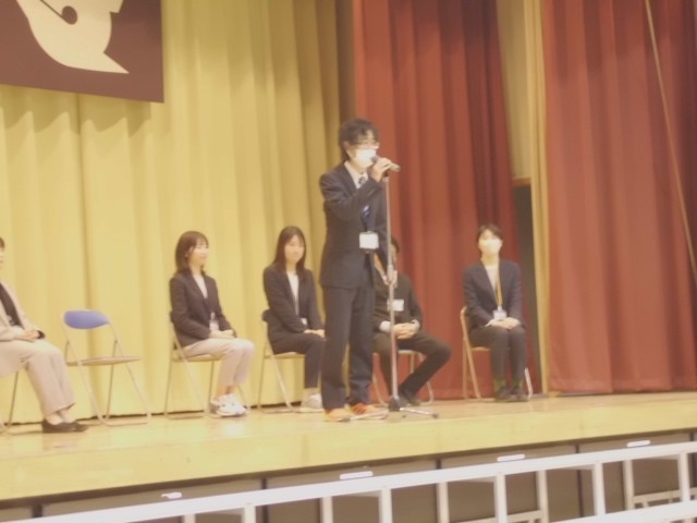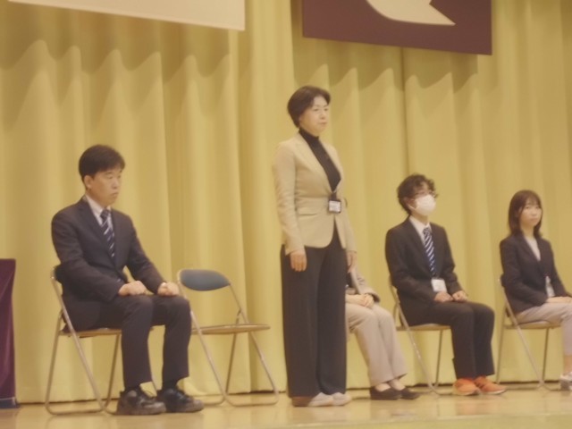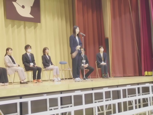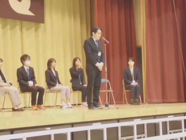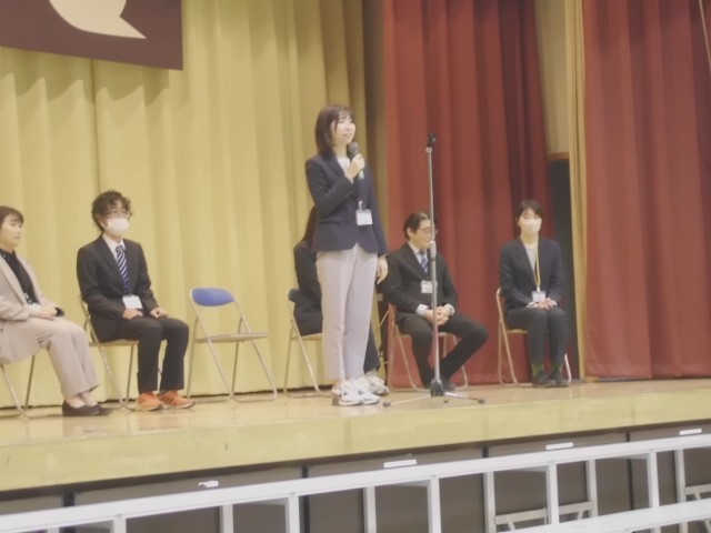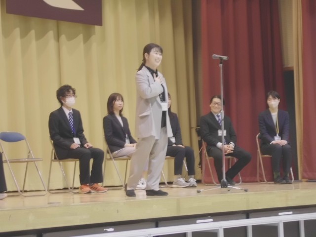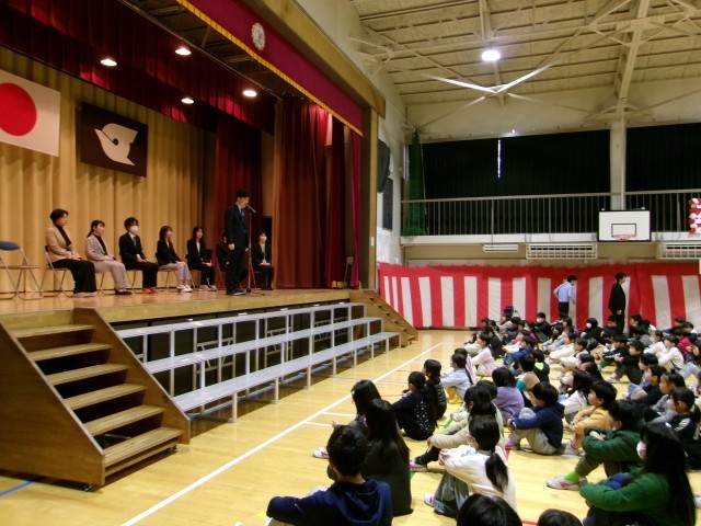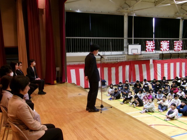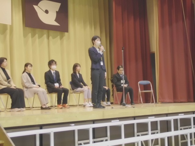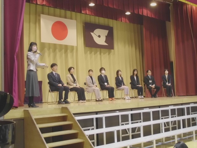 3月23日(月)今年度で転出、任期満了になる教職員とのお別れ会をしました。一人一人の先生からお別れの挨拶をもらった後、お世話になった感謝を込め、大きな声で校歌を歌いました。