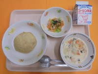 明日、10月10日は「目の愛護デー」です。目に必要な栄養素ビタミンAが多く含まれる「レバー・小松菜・たまご・人参」を使って給食の提供をしました。