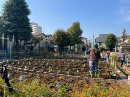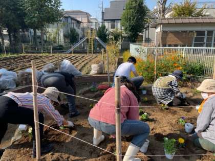 学校応援団の花ボランティアの方々が、花の苗を植えてくださいました