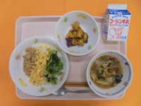 10月6日の献立は、・吹き寄せご飯・牛乳・揚げ豆腐の野菜あんかけ・かぼちゃの白玉...