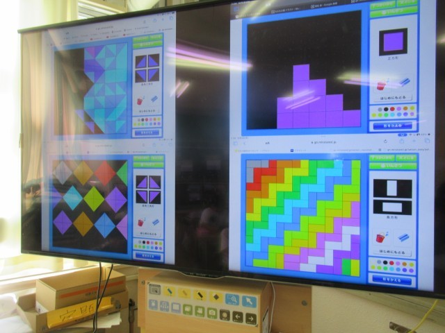学習した形を使って、もようの敷き詰めをしました。