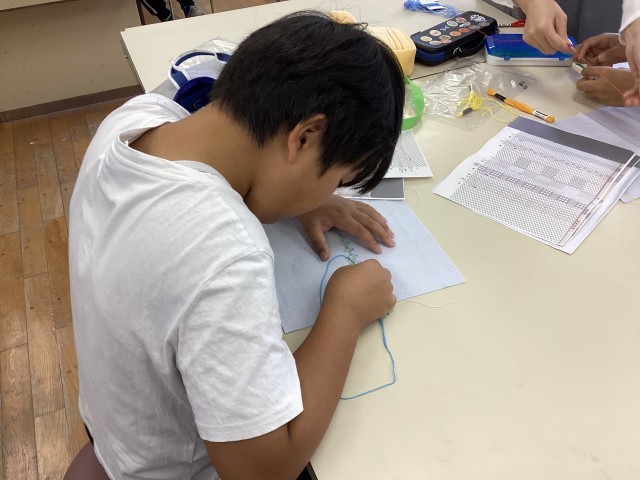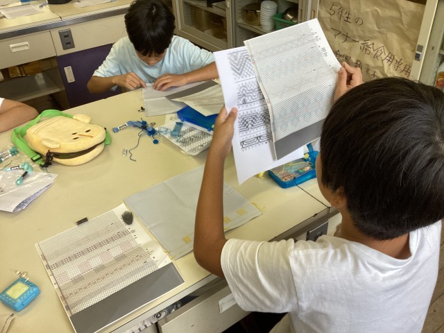 デザインや色の組み合わせを考えたり、同じ模様を作っている友達にやり方を教えたり、2回目ですが自分なりに工夫している姿が見られました。
