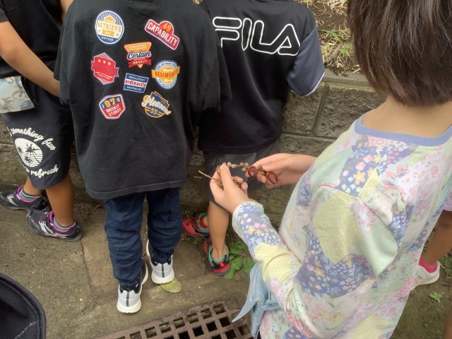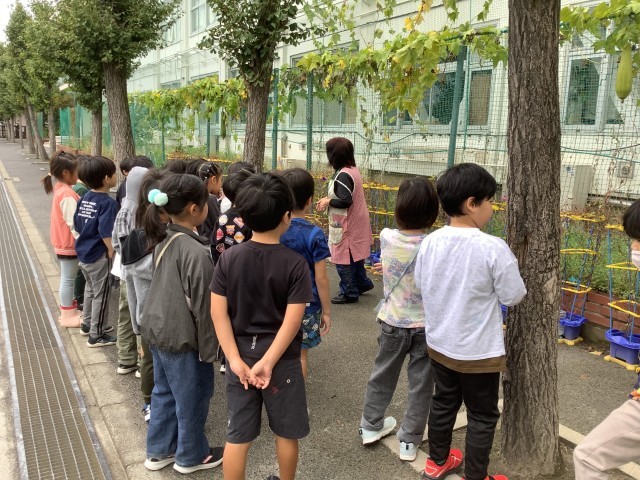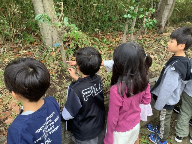 落ち葉や木の実がいっぱい落ちていて、それに児童たちも大はしゃぎです。