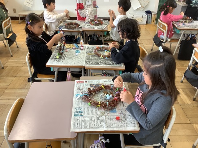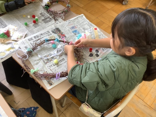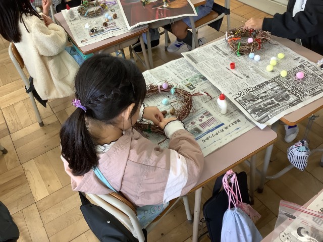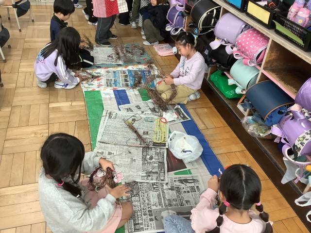 春に植えたあさがおのツルを使って、それぞれオリジナルのリースを作ります。