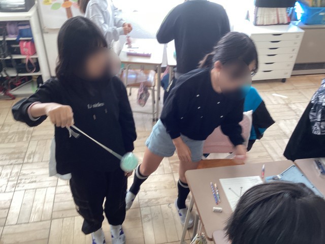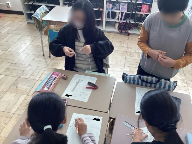 5年生の理科では振り子について学習しています。今回は自分の持っているものをおもりにして、振り子を作りました!