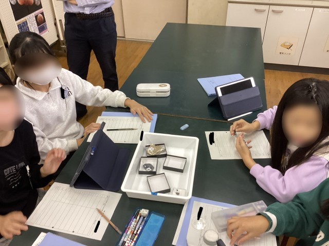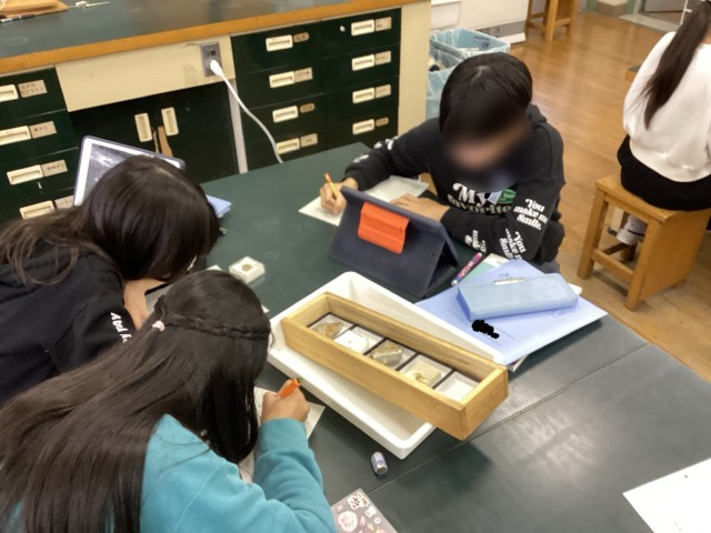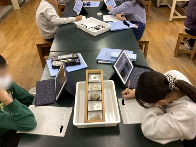 6学年の理科では地層について学習しています。今回は、地層に含まれる化石について調べました。iPadを使用して、なんという化石か特定しました!