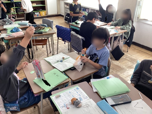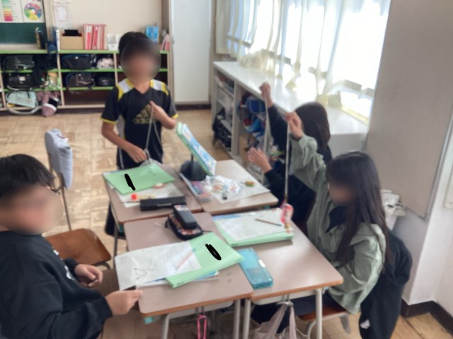 理科では振り子についての学習を始めました。今回は、身近なものを使って振り子をつくり、おもりの違いや糸の長さを変えて、リズムに合わせるための方法を調べました。