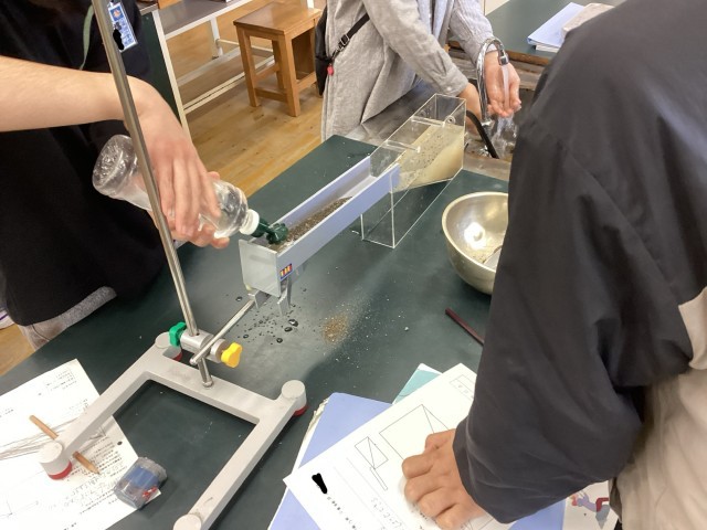 6学年の理科では、土地のつくりについて学習しています。今回は土砂が堆積してどのように地層ができるかについて調べました!