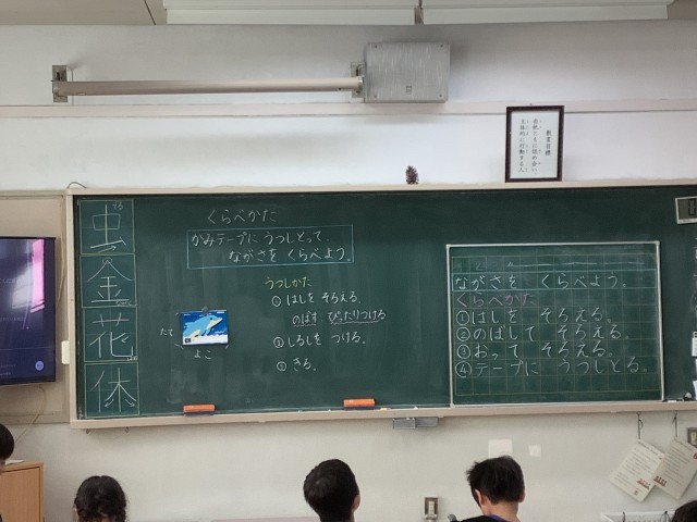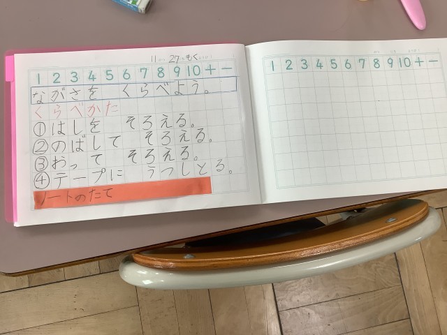 今日の算数では、紙テープに写しとって長さを比べようについて学習をしました。