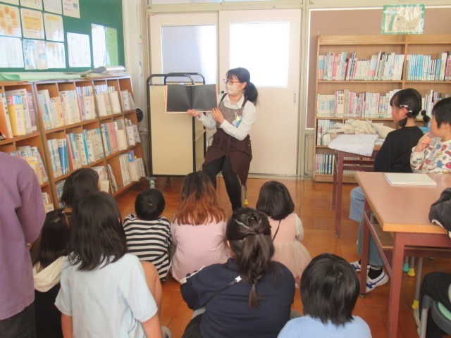 図書の時間に司書さんから読み聞かせをしてもらいました。