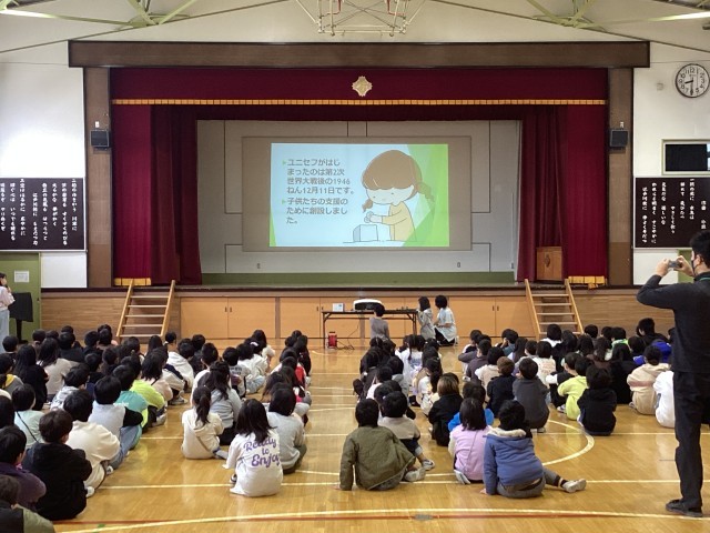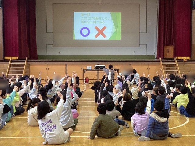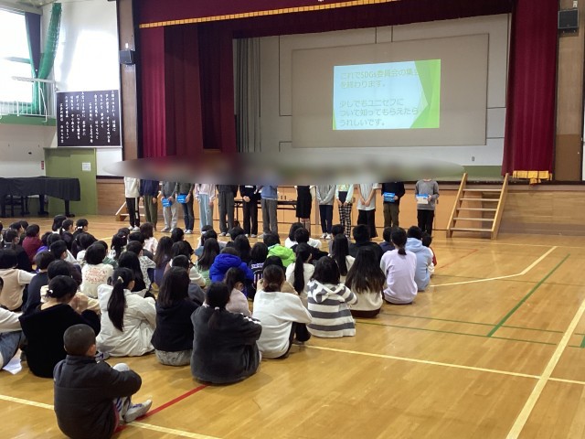 本日、SDG‘s委員会による集会が行われました。ユニセフや貧困に関するクイズを行いました。「来週からユニセフ募金を行います。ご協力お願いします。」と周知していました!