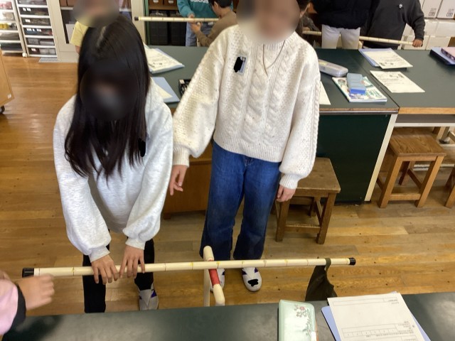 6学年の理科では、てこについて学習しています。今回は、5kg、10kgのおもりを使ってどの位置のとき持ち上がりやすいか、持ち上がりにくいかということについて実験しました!
