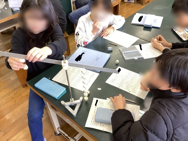6学年の理科ではてこについて学習しています。今回は実験用てこを使用して、てこのうでが水平になるときの条件について調べました!